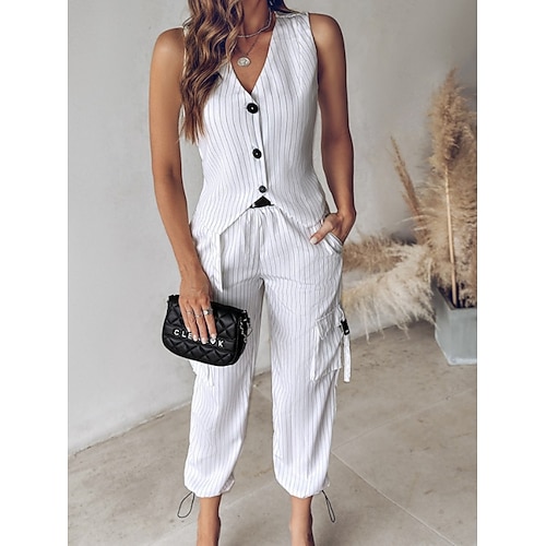 Per donna Set da due pezzi Gilet Set di Pantaloni Senza Maniche Scollo a V A righe Moda Streetwear Casuale Quotidiano All'aperto Nero Bianco Verde Estate Vestibilità regolare
