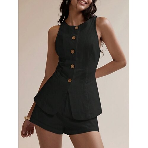 Per donna Set da due pezzi Camicia di cotone Set di Pantaloncini Senza Maniche Girocollo Semplice Moda Streetwear Casuale Quotidiano All'aperto Nero Bianco Verde militare Estate Vestibilità regolare