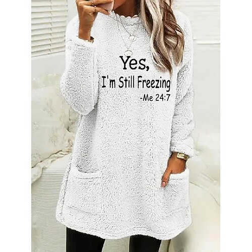 Per donna Pigiama felpato foderato in pile Lettera Caldo Morbido Manica Lunga Girocollo Top lunghi Casuale Sportivo Nero Giallo Rosa Rosso Blu Autunno Inverno