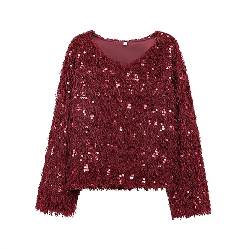 Per donna Camicia Top con paillettes Semplice Vintage Elegante Manica Lunga Colletto a Camicia Top Regolari Quotidiano Ferie Uscire Paillettes Bottoni Nero Argento Champagne Autunno Inverno
