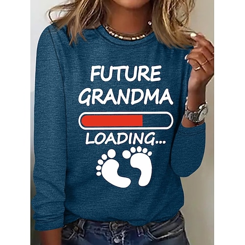 Natale Per donna Maglietta Grafico Animale Lettera Vintage Moda Elegante Manica Lunga Girocollo Top Regolari Quotidiano Weekend Stampato Blu Nero Bianco Rosa Verde Primavera Autunno