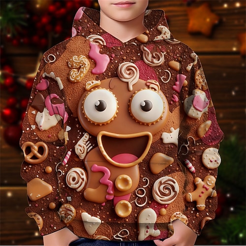 Natale Ragazzi 3D Grafico Omino di marzapane Felpa con Cappuccio Manica Lunga Primavera Autunno Moda Streetwear Bambini 4-12 Anni Con cappuccio All'aperto Casuale Quotidiano Vestibilità regolare