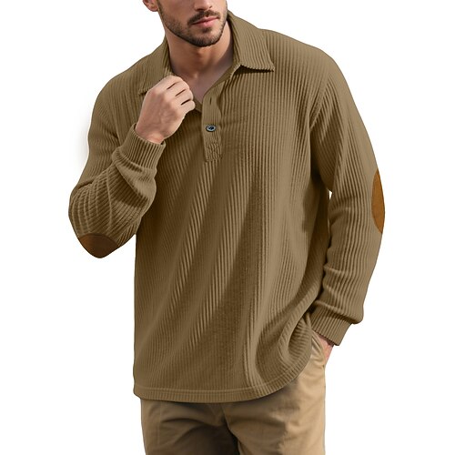 Per uomo Camicia di Velluto a Coste Polo Casuale Sportivo Bavero Manica Lunga Moda Essenziale Blocco di colori Bottoni Caldo Autunno Vestibilità regolare Nero Blu chiaro Rosso Verde Blu scuro Grigio