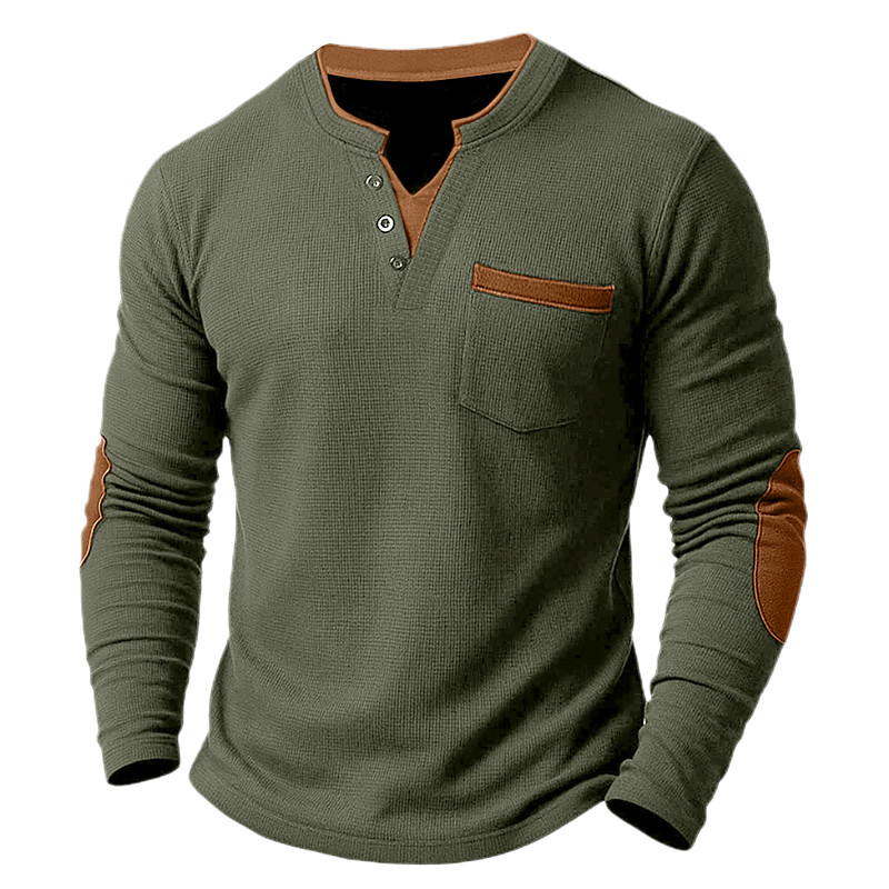 Men's Waffle Tee Waffle Henley Shirt Shirts With Elbow Patches Long Sleeve Solid Color Solid Fashion Basic Casual Fake two piece V Neck Henley Casual Street Sports Spring Fall All Seasons Black