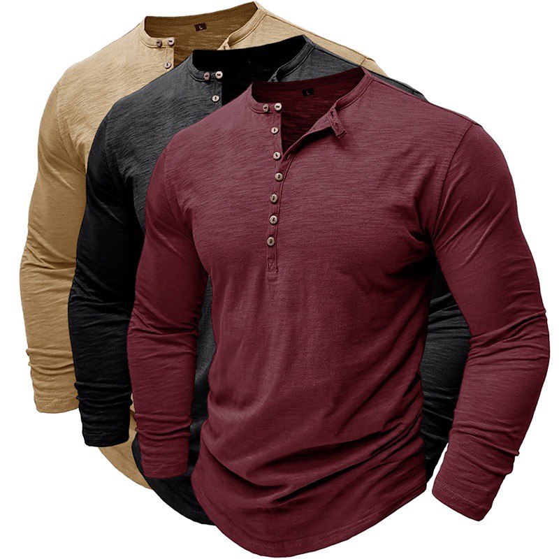 3pcs Men's Henley Shirt Tee Top Long Sleeve Solid Color Solid Fashion Daily Casual 3-Piece Multi-pack Henley Outdoor Casual Summer Spring Blue White Black Henley T-Shirt