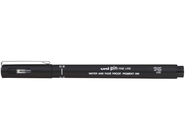 Uni-Ball PIN 08, Schwarz, Schwarz, Kunststoff, Rund, Edelstahl, 0,8 mm