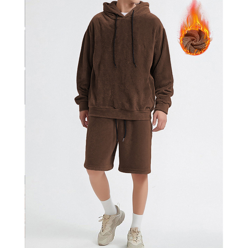 Men's Hoodie Tracksuit Hoodie Shorts Set Hoodie Outdoor Vacation Daily Drawstring Plain Blue Black Brown Activewear Sports Fashion Fall