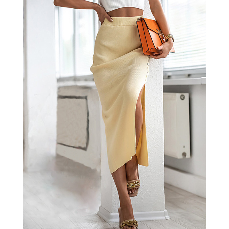 Women's Skirt Casual Midi Mid Rise Skirts Plain Split Ends Stretchy Daily Vacation Apricot Black White Yellow Summer Polyester