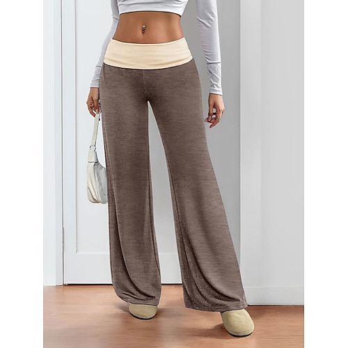 Per donna Gamba larga Chinos Vacanza Moda Streetwear Lunghezza intera Vita Bassa Semplice Patchwork Comodo Comodità Morbido Micro-elastico Quotidiano All'aperto Streetwear Blu Blu marina Nero Fuschia
