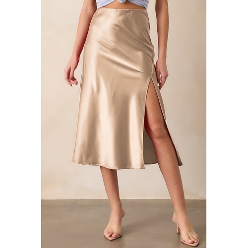 Per donna Gonne in raso Elegante Moda Casual Midi Vita Alta Gonne Semplice Micro-elastico Quotidiano Streetwear Nero Champagne Marrone Verde militare Estate Raso Poliestere