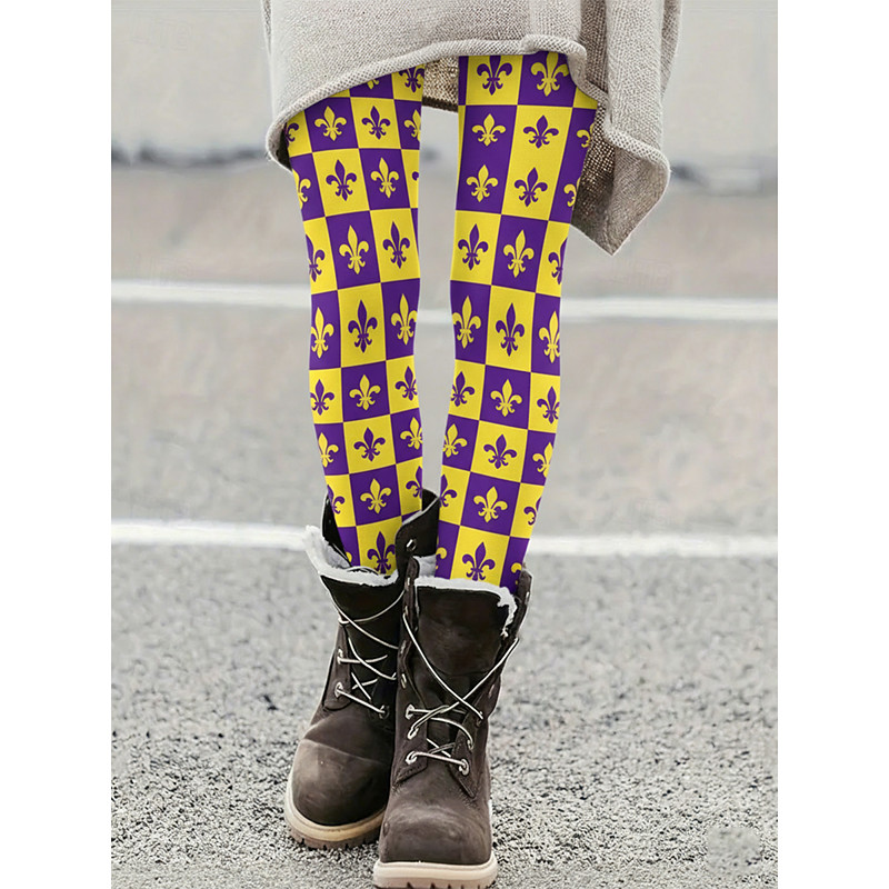 Women's Leggings Cozy Leggings Vacation Casual Full Length High WaistPantsCarnival Graphic Plaid Printing Comfort Comfortable Stretchy Vacation Casual Daily Purple Fall Slim Fit