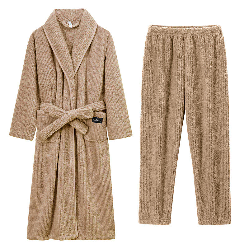 Men's Pajamas Sleepwear Pajama Top and Pant Lounge Pants 1 set Plain Fashion Stylish Classic Home Daily Bed Fleece Polyester Thermal Warm Comfort Soft Lapel Long Sleeve Front Pocket Belt Included