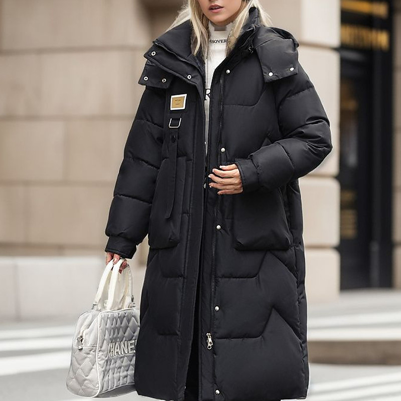 Women's Puffer Jacket Quilted Jacket Hoodie Jacket Warm Comfortable Zipper Pocket Casual Plain Vacation Home Daily Wear Going out Long Hooded Regular Fit Long Sleeve Outerwear Black Green Khaki Fall