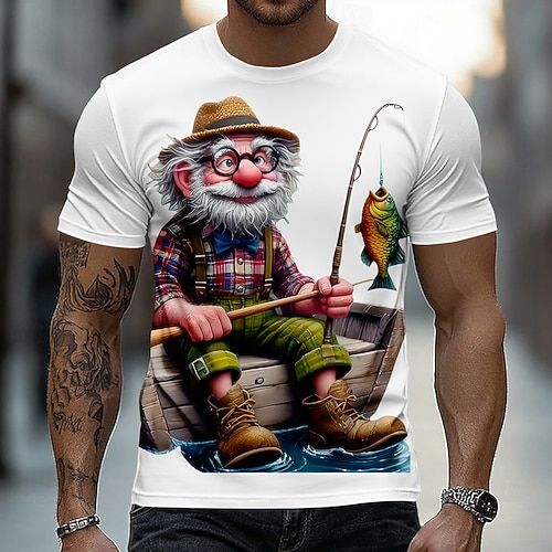 Per uomo Vecchio Uomo Per la pesca Maglietta Manica Corta maglietta Stampa 3D Girocollo Camicia Esagerato Designer Quotidiano Club Feste Bianco Grigio Estate Primavera Tutte le stagioni Abbigliamento