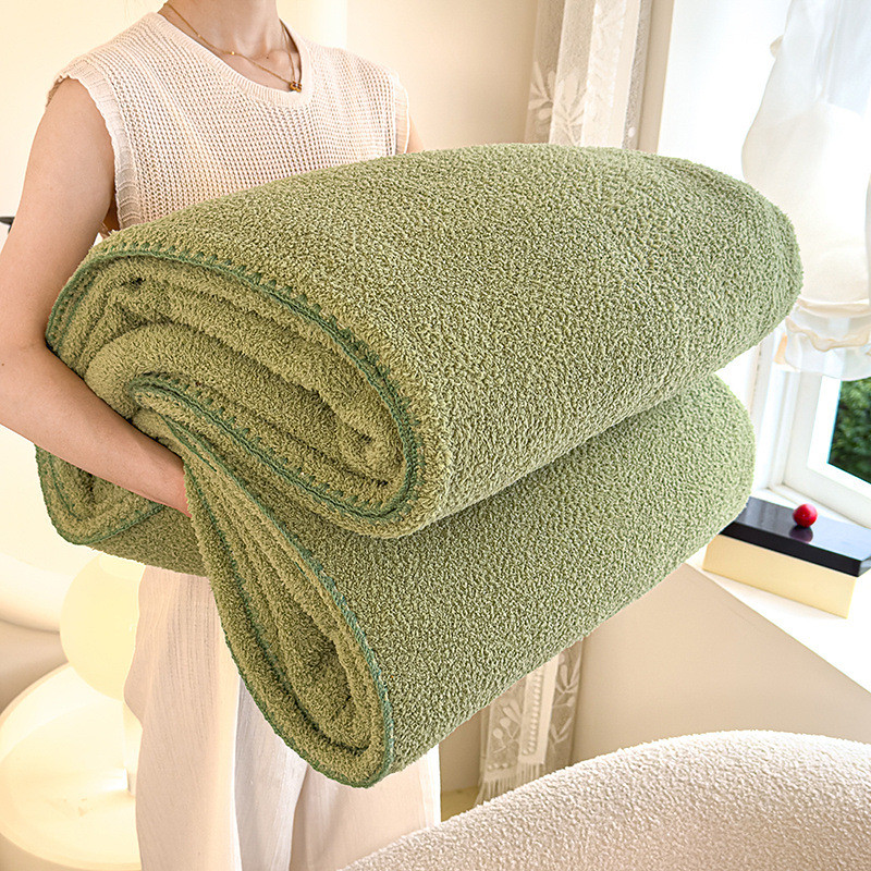 Solid Color Thickened Warm Double Layer Lamb Cashmere Jacquard Blanket Office Nap Blanket Sofa Warmer Super Soft Blankets