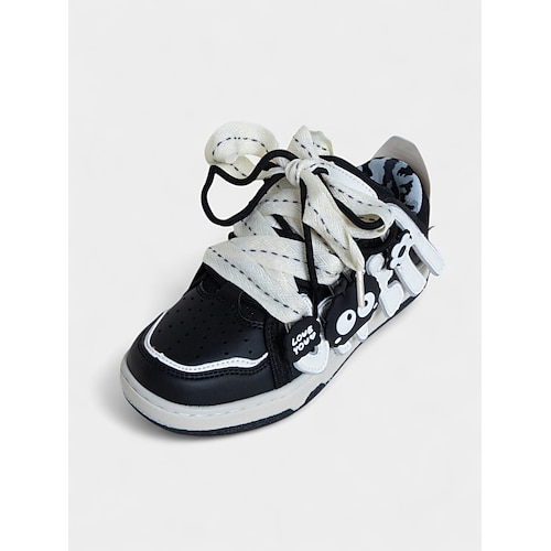 Sneakers da donna in stile cartoon di Halloween con decorazioni 3D di fantasmi e fiori: scarpe casual con lacci bianche e nere per festival autunnali, streetwear e mercatini notturni
