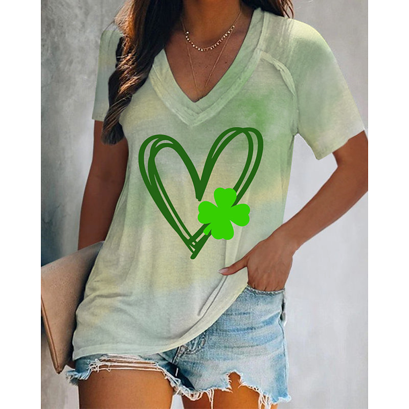 St. Paddy's Day St. Patrick's Day Women's T Shirt Heart Leaf St. Patrick's Day Short Sleeve V Neck Regular Tops Holiday Weekend Print Grass Green Light Green Army Green Green Jade