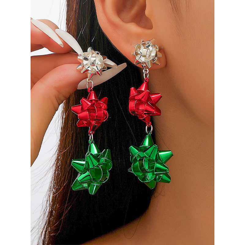 Women's Christmas Bow Earrings, Festive Red and Green Design with Alloy Material, Perfect for Holiday Parties and Gift Giving