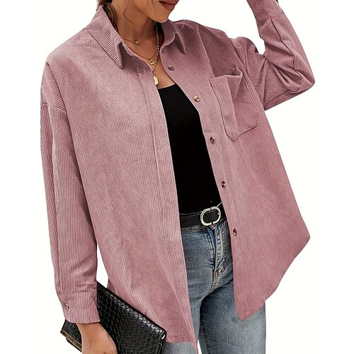 Per donna Camicia Blusa con texture Blusa Semplice Moderno Casual Manica Lunga Colletto a Camicia Top Regolari Quotidiano Uscire Tasca Bottoni Nero Vino Cachi Autunno