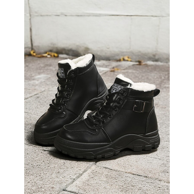 Women's Beige Lace-Up Ankle Boots with Warm Plush Lining – Winter Outdoor Footwear with Rugged Sole and Buckle Detail