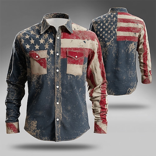 Per uomo Aquila Patriottico 250° anniversario degli Stati Uniti Camicia Camicia con Bottoni Manica Lunga Vintage Retrò Ferie Casual Quotidiano Primavera Autunno Collo ripiegato Stampa 3D Camicia tipo