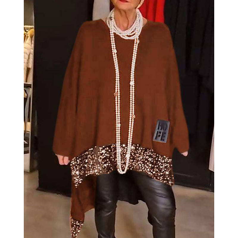 Women's Blouse Color Block Stylish Modern Long Sleeve Crew Neck Regular Tops Daily Holiday Going out Sequins Patchwork Black Red Blue Brown Green Fall