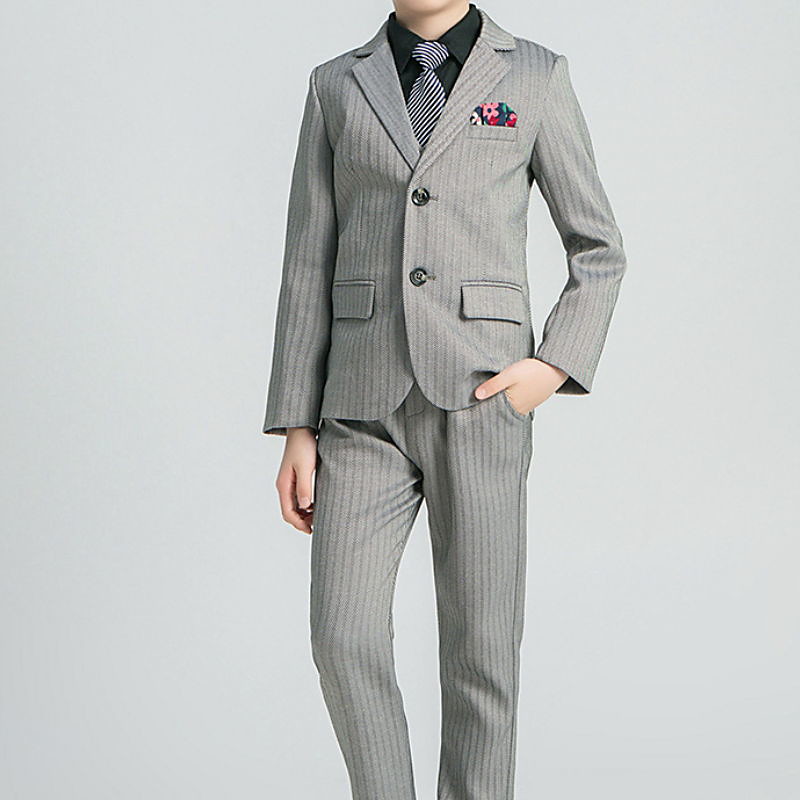4 Pieces Ring Bearer Suit Boys Kids Suit Formal Suit Suit Blazer Clothing Set School Formal Fashion Basic Formal Stripe Patchwork Black Gray Cotton