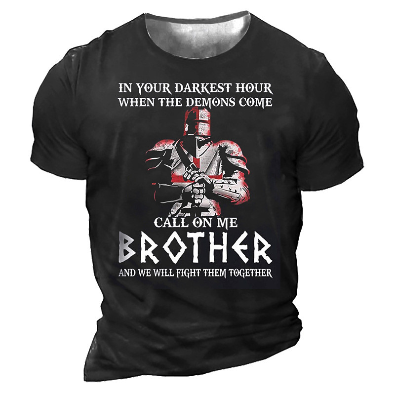 Mens Graphic T-Shirt with Brotherhood 'Call On Me Brother' Crusader Knight Loyalty Support Design