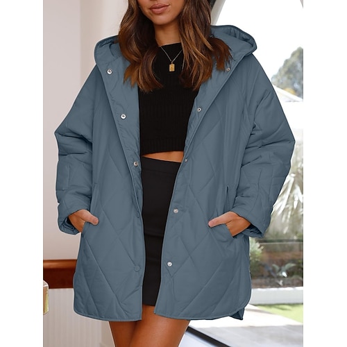Per donna Giacca trapuntata Caldo Confortevole Tasca Bottoni Casual Semplice Vacanza Streetwear Casuale Abbigliamento quotidiano Monopetto Lungo Con Cappuccio Vestibilità comoda Manica Lunga