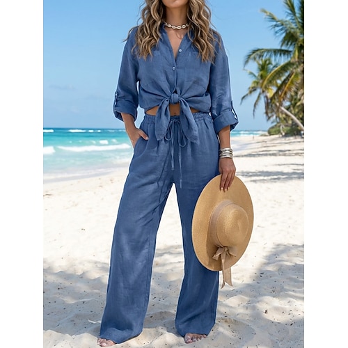 Per donna Set di biancheria in cotone Set di Pantaloni Bolero Top Manica Lunga Scollo a V Semplice Coulisse Moda Streetwear Quotidiano All'aperto Spiaggia Nero Bianco Giallo Estate Vestibilità comoda