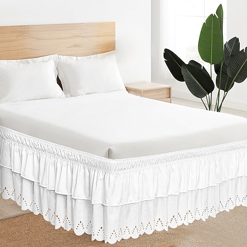 14 Zoll (ca. 35,5 cm) breiter, doppellagiger Bettrock mit Stickerei, erhältlich in verschiedenen Farben, hält das Schlafzimmer ordentlich und aufgeräumt – mit Gummizug