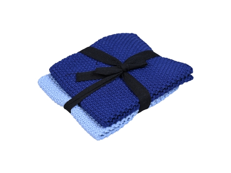 Det Gamle Apotek Strikkede karklude, h25xw25cm, 100% bomuld oeko-tex, 2/set, blå/lyseblå