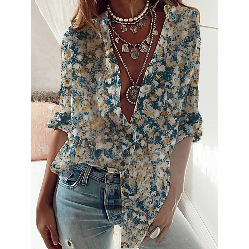 Women's Shirt Long Sleeve Button Down Blouse Tunic Streetwear Casual Floral Buttons Print Regular Tops Daily Weekend Blue Spring Fall