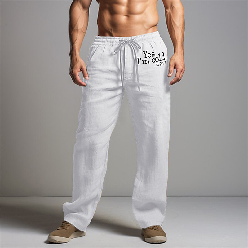 Men's Graphic Letter Linen Pants Pants Trousers Mid Waist Casual Daily Wear Vacation Going out Spring Fall Black White Green