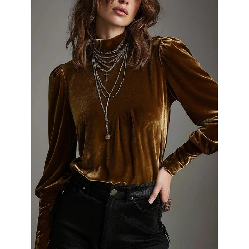 Women's Blouse Solid Color Stylish Casual Long Sleeve Crew Neck Regular Tops Daily Ruched Brown Spring Fall Winter