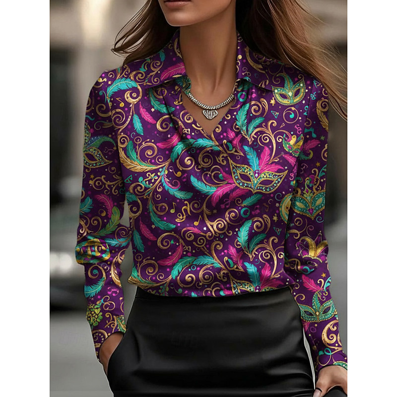Carnival Women's Shirt Graphic Vintage Casual Long Sleeve Cowl Neck Regular Tops Daily Work Holiday Print Draped Purple Spring Fall