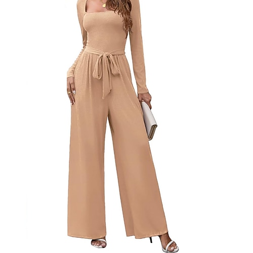 Per donna Tuta Elegante Tinta unica Manica Lunga Gamba larga Collo a U Allacciato Vacanza Casa Vestibilità regolare Blu Nero Rosa Estate