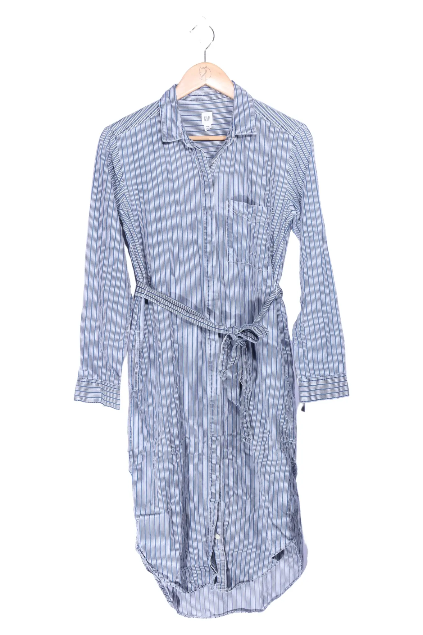 GAP Blusenkleid Damen XXS Blau Gestreift Mittellang Tencel