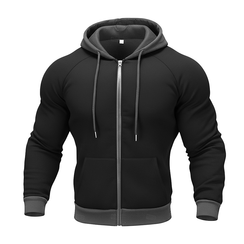 Men's Hoodie Full Zip Hoodie Fleece Hoodie Black Navy Blue Green Khaki Light Grey Hooded Plain Zipper Pocket Work Sports Outdoor Casual Basic Casual Workout Fall Winter Clothing Apparel Hoodies