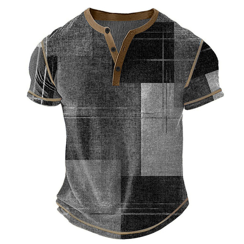 Men's Plaid Patchwork Henley Shirt Waffle T Shirt Short Sleeve Daily Retro Vintage Classic Sports Outdoor Casual Holiday Spring Summer All Seasons Dark Brown Dark Grey Dark Blue Green Henley Henley