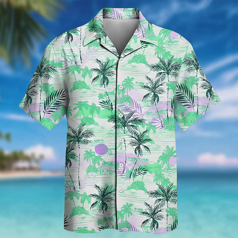 Men's Coconut Tree Tropical Plants Linen Shirt Summer Hawaiian Shirt Button Up Shirt Short Sleeve Hawaiian Resort Vacation Holiday Beach Wear Summer Spring Turndown Collared Shirts Pink Blue Green