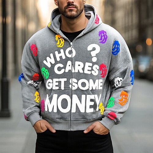 Per uomo Lettera Felpa con Cappuccio Moda Quotidiano Casual Manica Lunga Con Cappuccio All'aperto Vacanza Abbigliamento casual alla moda Nero Rosso Azzurro cielo Viola Grigio scuro Con zip Tasca