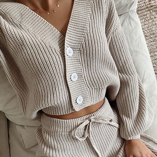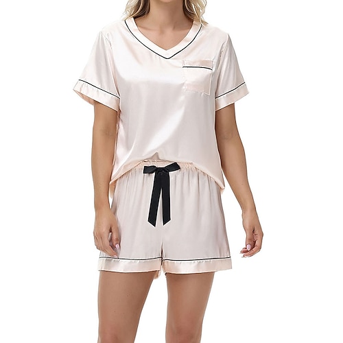 Per donna Abbigliamento da Casa Set Pigiama Moda Casual Morbido Colore Puro Patchwork Elastico in vita Shorts Casa Vacanza Manica Corta Scollo a V azzurro cielo Nero Champagne Rosa Marrone Estate