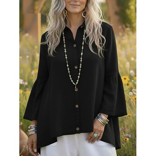 Per donna Blusa Tinta unica Elegante Essenziale Casual Manica Lunga Colletto a Camicia Top Regolari Quotidiano Arricciato Nero Bianco Azzurro cielo Viola Albicocca Primavera Autunno Inverno