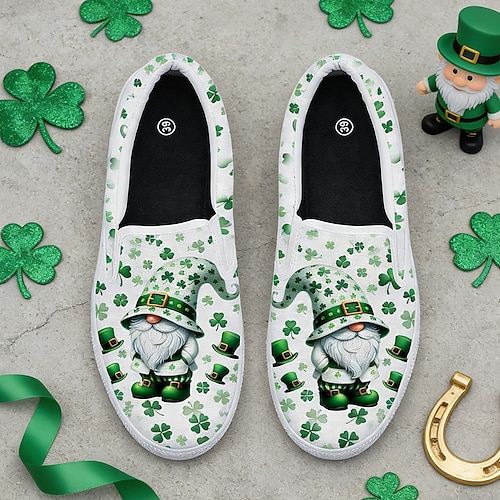 Per donna Quotidiano Festa di San Patrizio Tacco basso Punta Tonda Classico Casual Collegiale Tela Finta Pelle Mocassino Bianco e verde Bianco Verde Chiaro