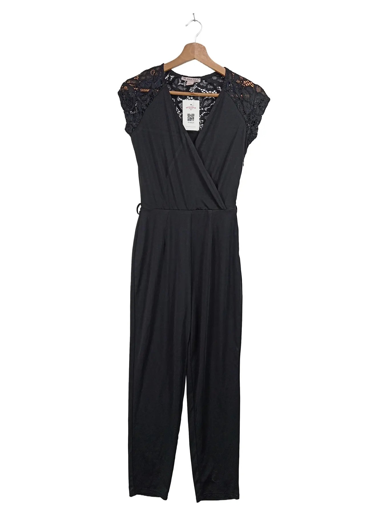 Overall LASCANA, Damen, Gr. 38, N-Gr, beige (schwarz, creme, bedruckt), Jersey, Obermaterial: 100% Viskose, bedruckt, figurumspielend kurz, V-Ausschnitt, Volant, Overalls Overall, mit Volant am 3/4-Arm, kurzer Jumpsuit mit Blumenprint schwarz, creme, bedr
