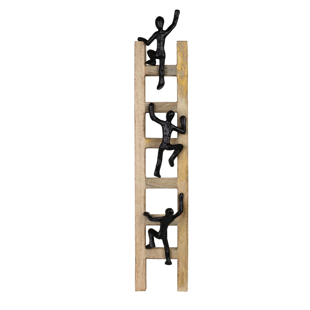 Moritz Dekofigur Ambition Schwarz 57,5 cm aus Mangoholz und Aluminium moderne Wanddeko mit drei kletternden Figuren auf Leiter Symbol für Ehrgeiz und Erfolg