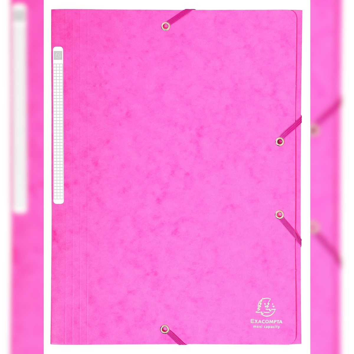 Exacompta 17108H 25x Sammelmappe mit Gummizug und 3 Klappen, Maxi-Kapazität, aus Colorspan-Karton 500µ/425g/m2, 24x32cm für DIN A4 - Rosa