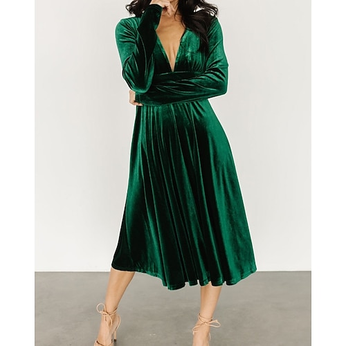 Per donna Abito Midi Abito in Velluto Abito da Cocktail Elegante Moda Moderno Quotidiano All'aperto Festa serale Vestibilità regolare Semplice Manica Lunga Scollo a V Blu Nero Rosso Verde scuro