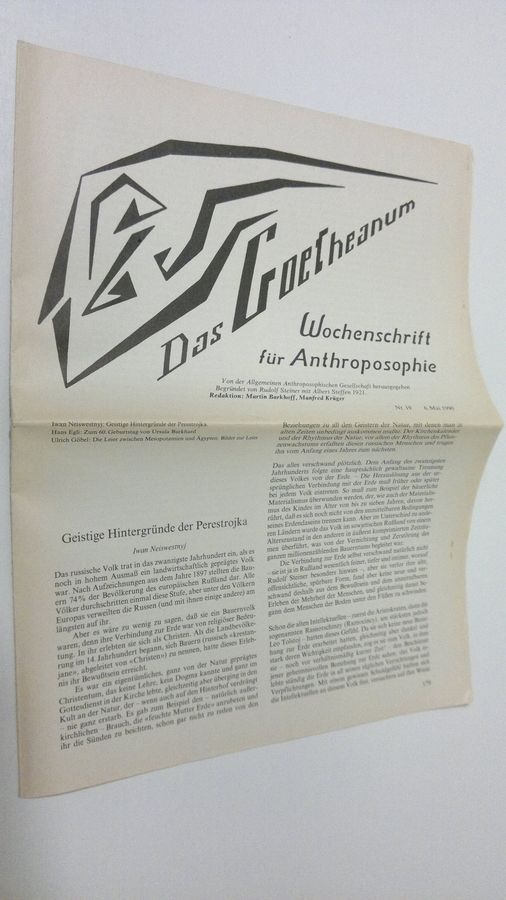 Martin Barkhoff : Das Goetheanum nr. 19/1990 : Wochenschrift fur Anthroposophie